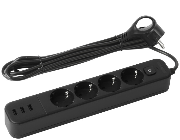 Сетевой фильтр Intro SFE430-3xUSBA-B с заземлением, с выключателем, 4 розетки, 3USB, провод 3 м, ПВС 3x0,75мм2. Базовый уровень защиты техники: от импульсных помех, от перегрузки, от короткого замыкания. Максимальная мощность 10А/2200 Вт. Корпус из негорючего пластика (полипропилен). Вилка обеспечена кольцом для удобного извлечения ее из розетки. Выключатель со световой индикацией позволяет выключить все приборы, подключенные к сетевому фильтру, не вынимая вилки из розетки. Отлично подойдет для защиты бытовой и компьютерной техники. Сетевой фильтр оснащен 3USB для зарядки мобильных устройств.