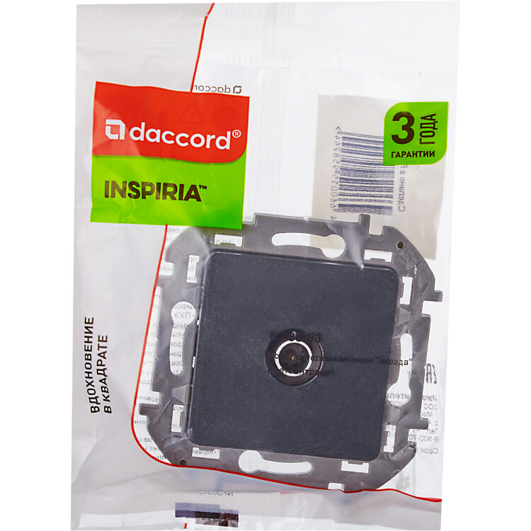 Розетка телевизионная для скрытого монтажа Legrand/Daccord Inspiria, для схемы "звезда", затухание 1дБ, 4-2400МГц, поддержка обратного питания для активных антенн до 500мА, цвет "Антрацит".