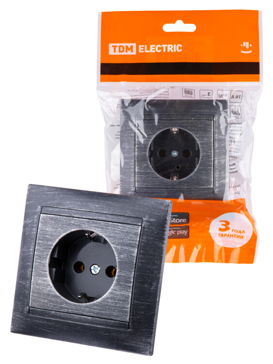 Розетка 2П+З 16А 250В старинное серебро "Лама" TDM (кр.10шт)