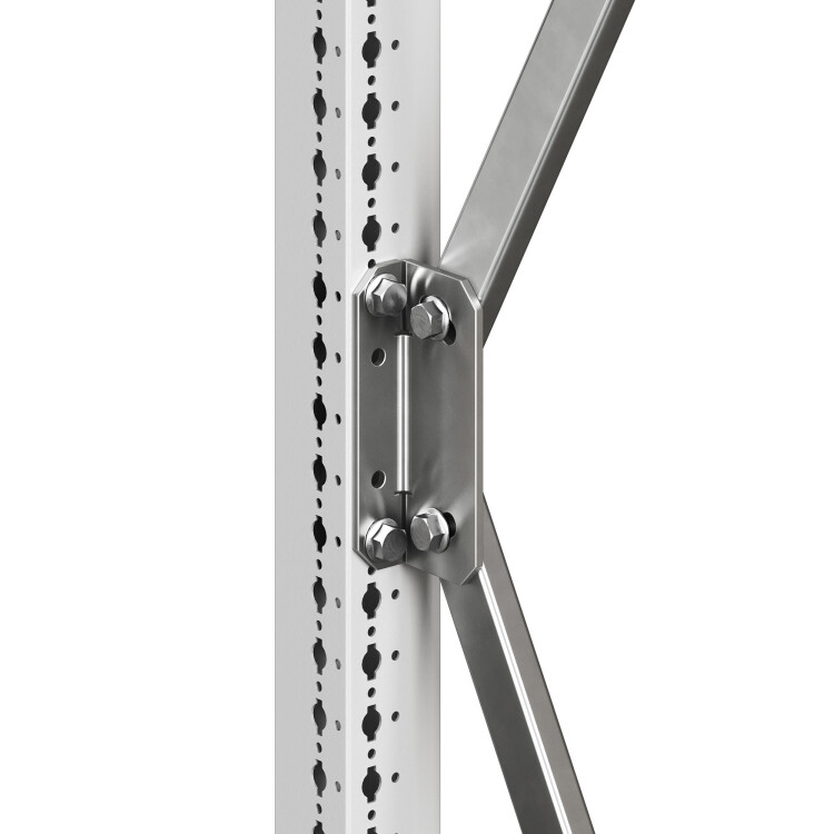 Комплект усилителей сейсмостойкий предназначен для совместного применения с сейсмоцоколем для установки напольных корпусов серии CQE N в сейсмоопасных зонах, включая объекты АЭС и ГЭС. Материал элементов – сталь толщиной 4 мм. Одновременное использование сейсмокомплекта и сейсмоцоколя обеспечивает усиление каркаса корпуса, соответствие вибропрочности по группе механического исполнения М40 и сейсмостойкость до 9 баллов по шкале MSK-64 на высоте установки до 70 м. Оцинкованные втулки комплекта обеспечивают жёсткое соединение нижних сейсмоуглов шкафа с сейсмоцоколем, существенно повышая общую жёсткость конструкции. Комплектующие совместимы исключительно с корпусами серии CQE N. Габариты ВхГ: 1800х600 мм