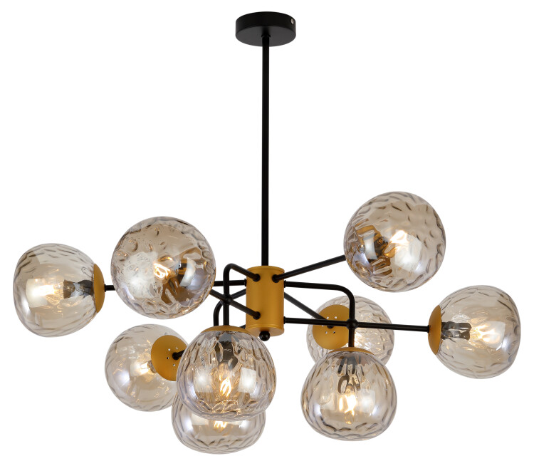 Нежная и жизнерадостная серия с фигурными литыми плафонами и деталями цвета античного золота всё, как и положено богине юности. Древние Греки знали толк в красоте и полноте жизни: округлые плафоны люстр Rivoli Geba в форме плодов фундука имеют рельефные углубления, в которых задорно играют световые лучи. Коллекция прредставлена 9-ти рожковой люстрой.