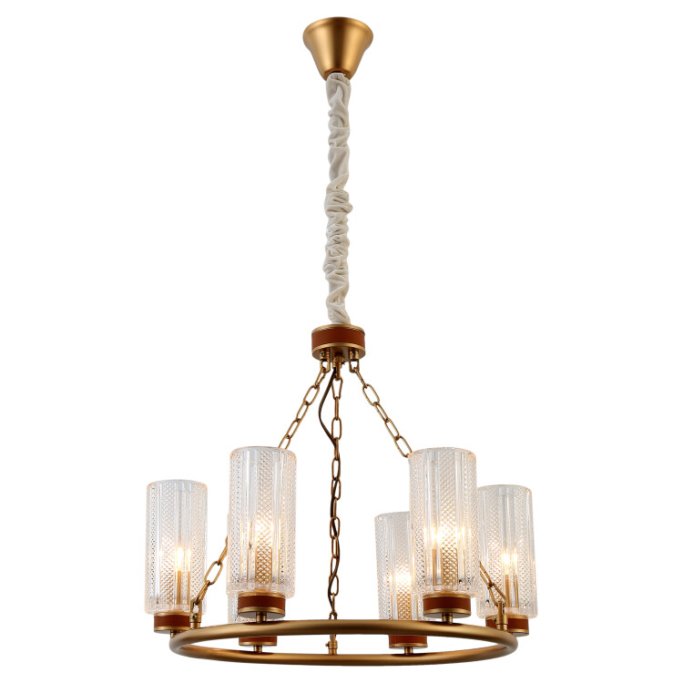 Вы оцените качественный хрусталь рельефных плафонов и эффектный декор рожков и основания кожаными элементами. Благодаря регулировке подвеса люстры Ante применяют в помещениях с разной высотой потолка. Используются с 6 лампами Е14 по 40 Вт.