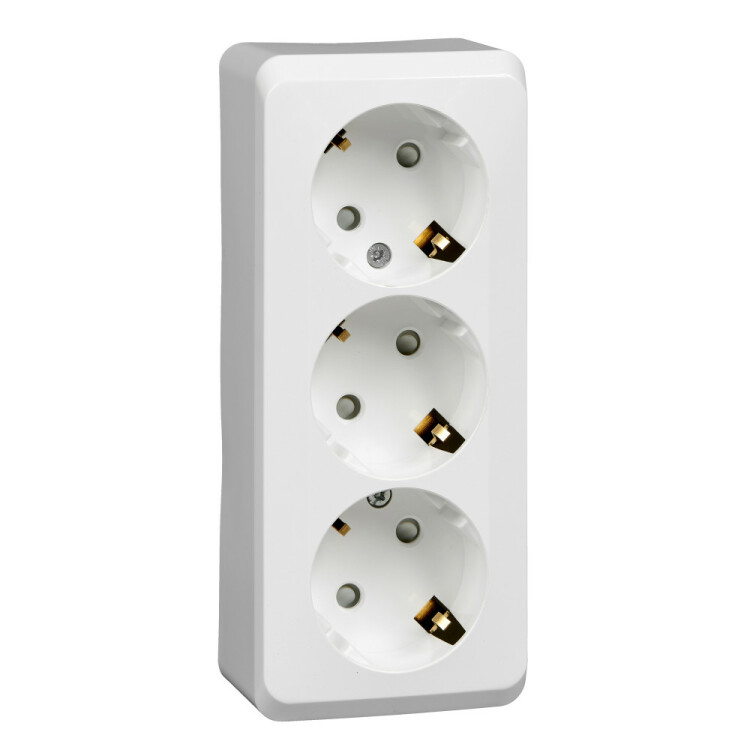 ЭТЮД О/У тройная РОЗЕТКА с заземлением со шторками 16А 250В, БЕЛЫЙ, Россия