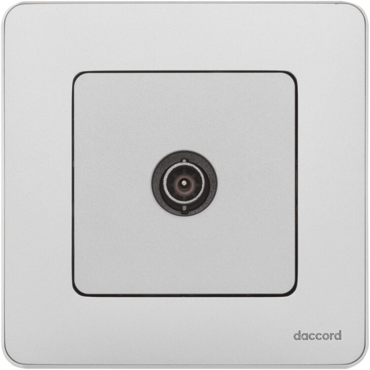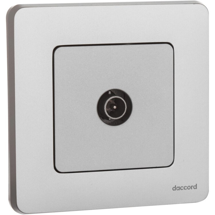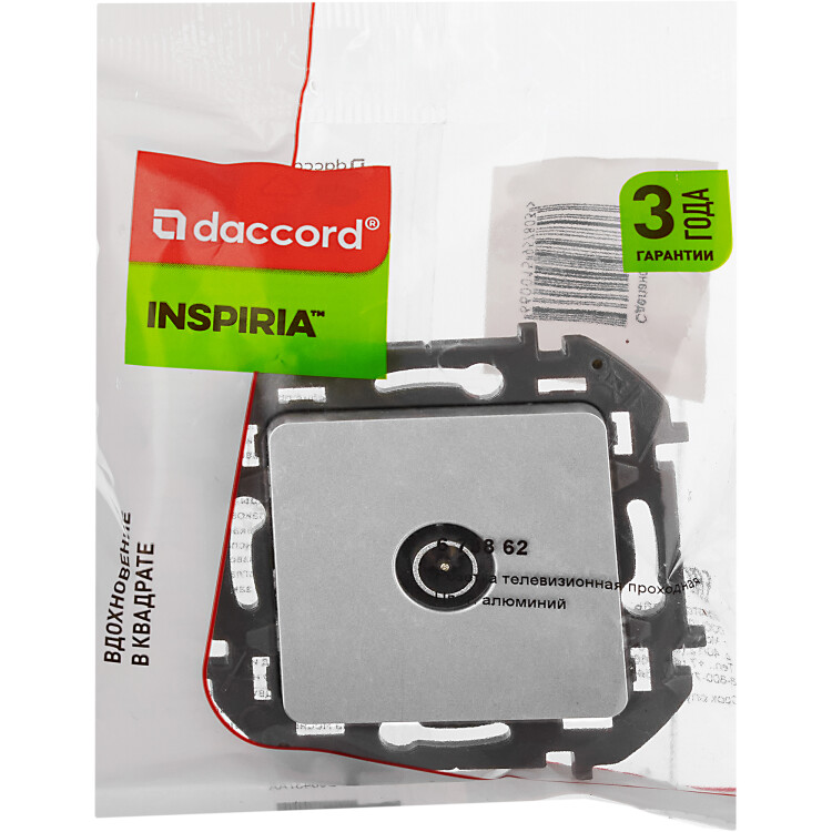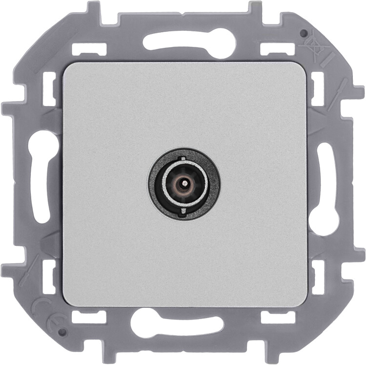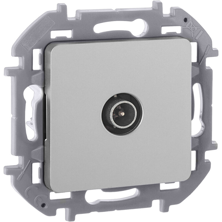 Розетка телевизионная для скрытого монтажа Legrand/Daccord Inspiria, проходная для схемы "шлейф", затухание 14дБ, 4-862МГц, цвет "Алюминий".