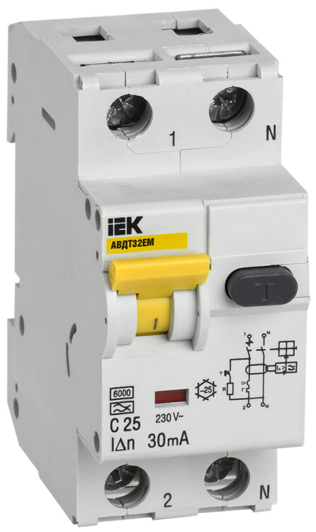 Автоматические выключатели дифференциального тока АВДТ32ЕМ сочетают функции автоматического выключателя и электромеханического УЗО типа А. Отключают защищаемый участок сети при обнаружении тока утечки на землю или сверхтока.