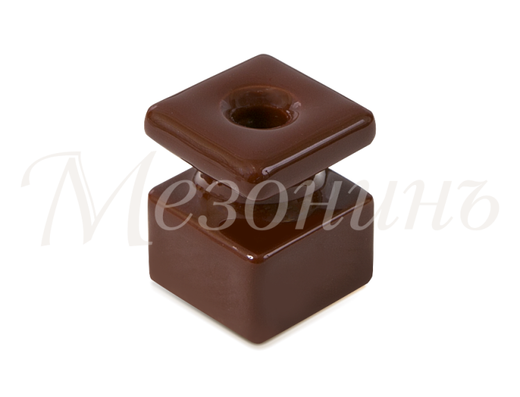 Изолятор фарфоровый квадратный для монтажа витой электропроводки, размеры: 20х20х25мм, цвет - коричневый, ТМ "МезонинЪ" (30шт/уп). (кр. 30шт)