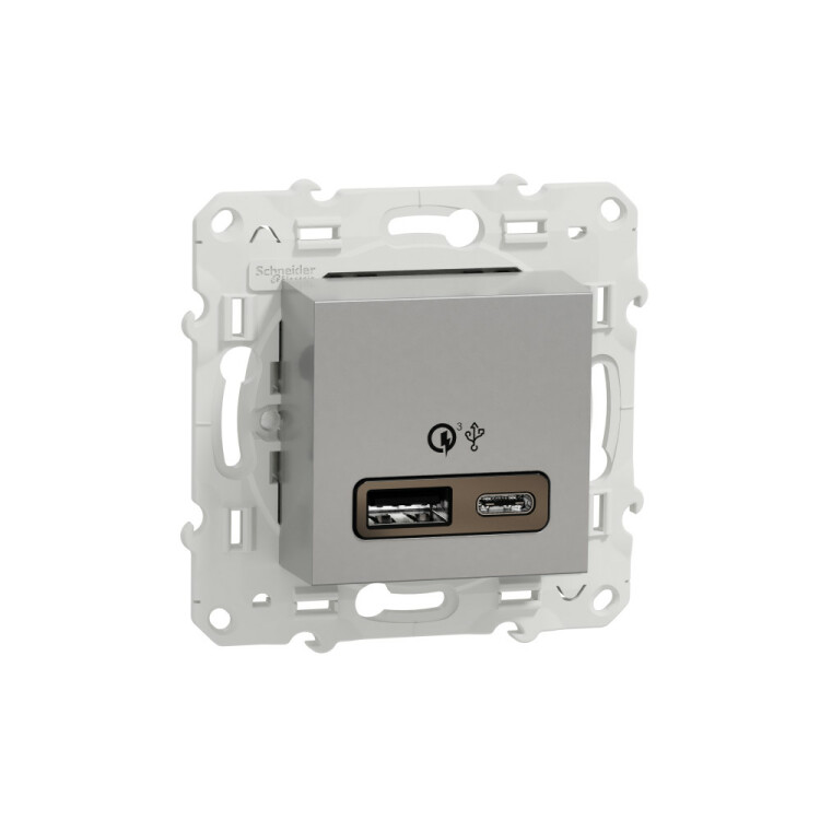 UNICA NEW РОЗЕТКА быстрая зарядка USB, 2-местная, тип А+С, 18 Вт, АЛЮМИНИЙ (кр.1шт) C3(+)
