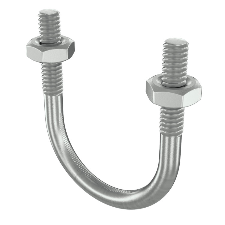 Скоба монтажная U-образная с резьбой М8 с гайками для труб d 2". Применяется для крепления труб различного назначения к профилям и консолям. Резьба соединительной гайки М10. Межосевое расстояние 71 мм