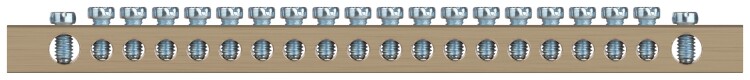 Шины латунные PEN "земля-ноль" применяются для электрического и механического соединения нулевых, защитных и фазных проводников в электрических щитах и распределительных устройствах. Изделия выполняются из латуни соответствующего сечения с отверстиями обладающими винтовыми зажимами для подключения проводников.