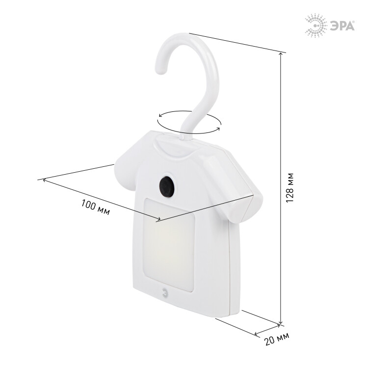 Удобный, красивый и функциональный светильник-ночник NLED-485-1W-SW-W со светодиодами (LED), с выключателем. Дизайн корпуса светодиодного ночника напоминает рубашку на вешалке. Светильник автономный, работает от элементов питания 3 х ААА (не входят в комплект поставки), у него есть крючок для подвеса с поворотом в любом направлении. Есть магнитное крепление - на металлических поверхностях держится без крюка. Также светильник-ночник можно просто поставить - будет устойчиво стоять. Используйте его где удобно - можно повесить в шкаф для подсветки, в любое другое подходящее место, просто поставить и даже прикрепить на холодильник. Поменять батарейки очень легко. Поставляется в блистерной упаковке с евроотверстием.