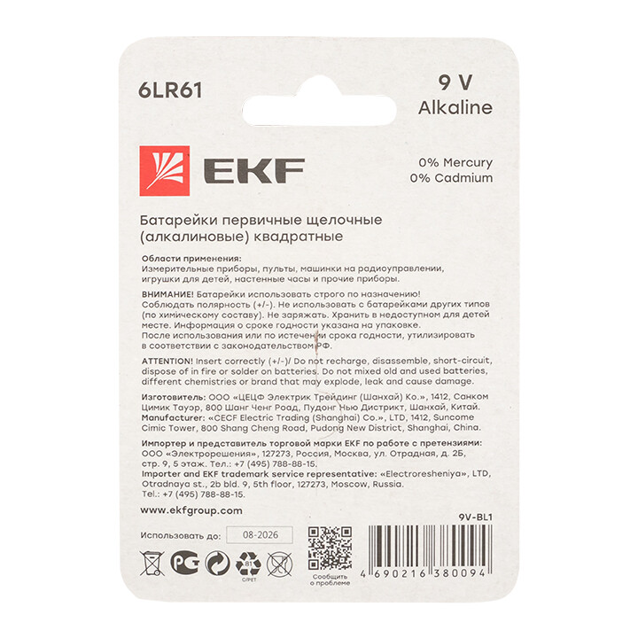 Батарейки используются повсеместно. Разнообразие устройств требует наличие широкого ассортимента типов батареек, которые есть в портфеле EKF. Элементы питания требуют специалиальной утилизации.