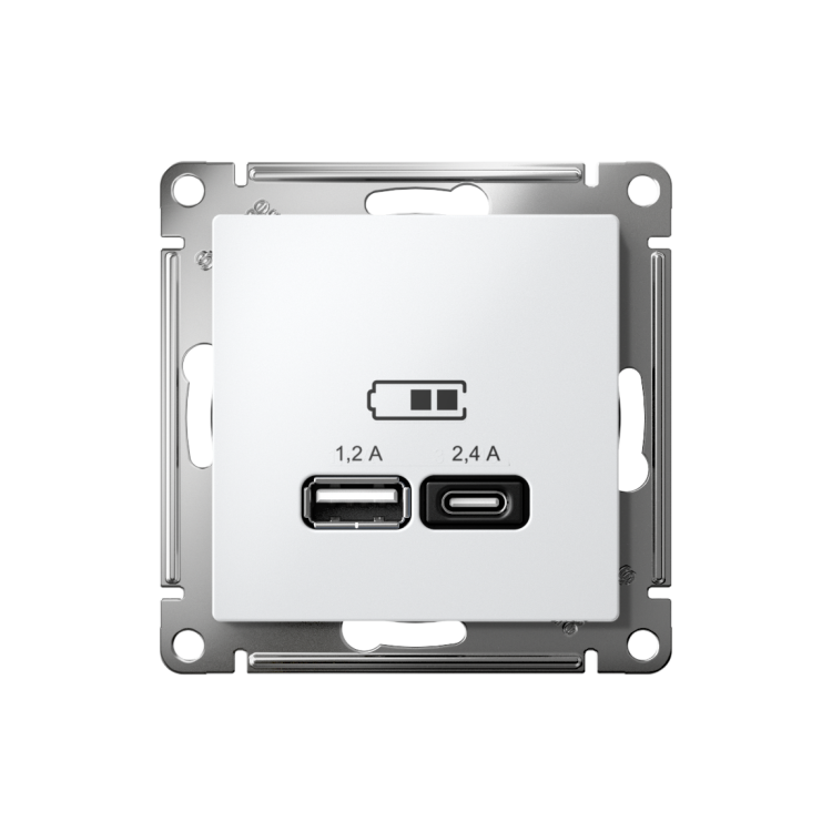Розетка Systeme Electric (ранее Schneider Electric) серии AtlasDesign в цвете белый двойная USB с разъемами типа A+C. Пластик с ионами серебра в белом цвете обеспечивает антибактериальный эффект. Cовременная USB-зарядка с двумя разъемами позволяет заряжать как стандартные мобильные устройства через разъем типа А, так и новейшие устройства, в том числе ноутбуки, с разъемом типа С. (ранее Schneider Electric ЭУИ UNICA NEW NU501818)