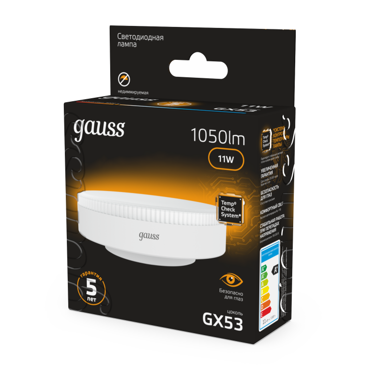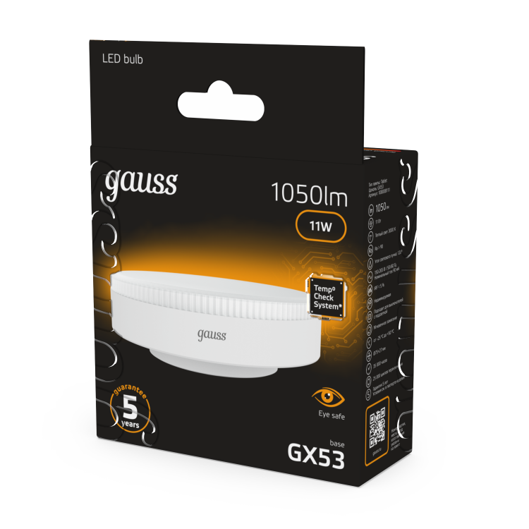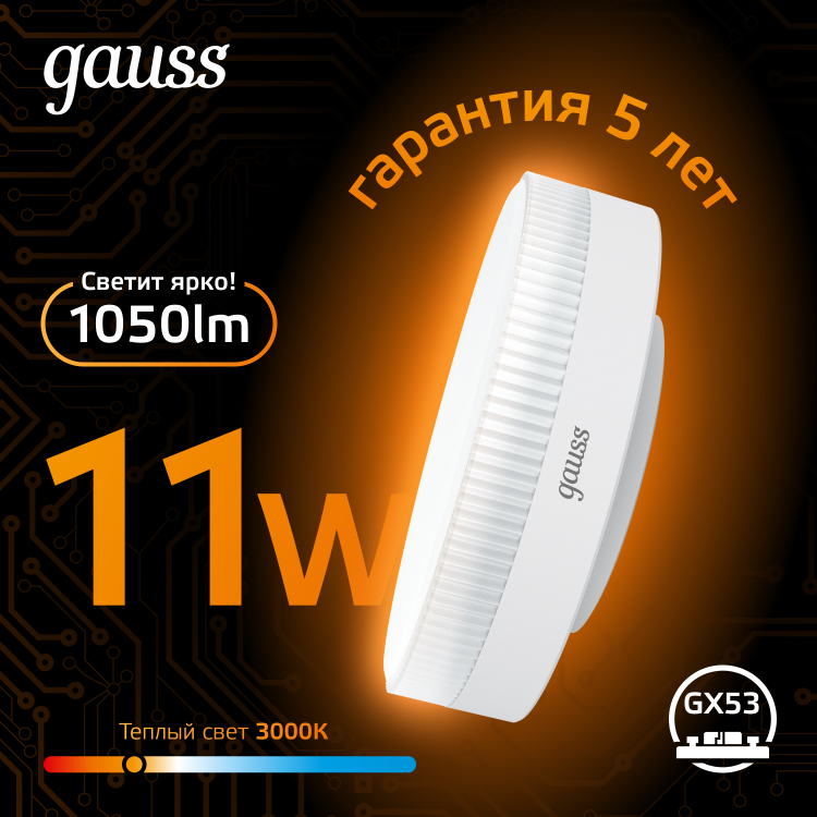 Лампа Gauss GX53 11W 1050lm 3000K LED 1/10/100