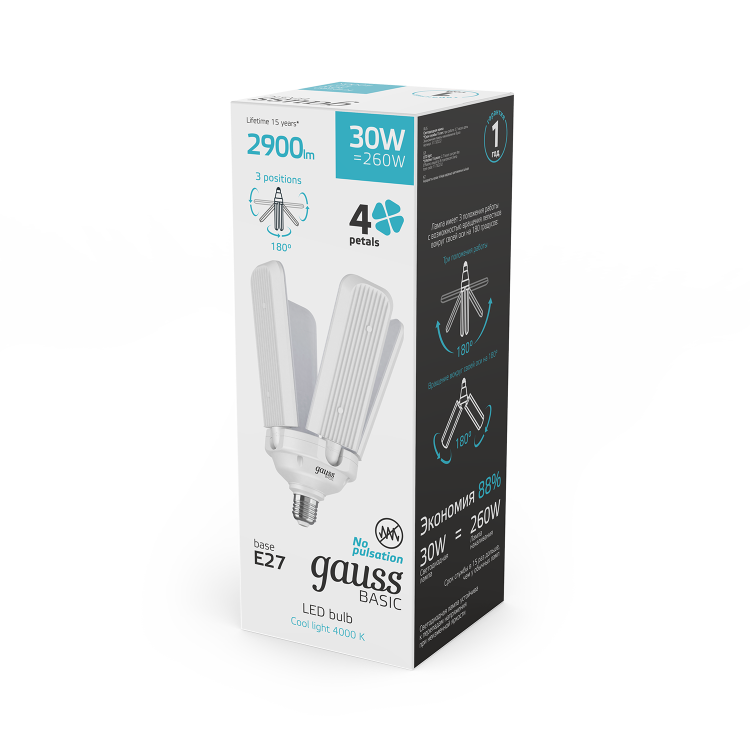 Регулируя направление лепестков лампы вы можете как направить свет в более узкую область, так и убрать излишнее освещение из конкретного места.