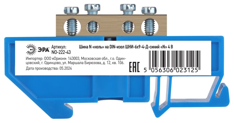 Шины латунные N «нейтраль» 6×9 на DIN-изоляторе применяются для электрического и механического соединения нулевых, защитных и фазных проводников в электрических щитах и распределительных устройствах. Изделия выполняются из латуни соответствующего сечения с отверстиями, обладающими винтовыми зажимами для подключения проводников. Шины установлены на пластиковый изолятор, изготовленный из полипропилена с добавлением антипиренов. Конструкция изолятора обладает креплением для установки на DIN-рейку. Цвет изолятора (синий/жёлтый) позволяет быстро и правильно идентифицировать тип подключаемого проводника.