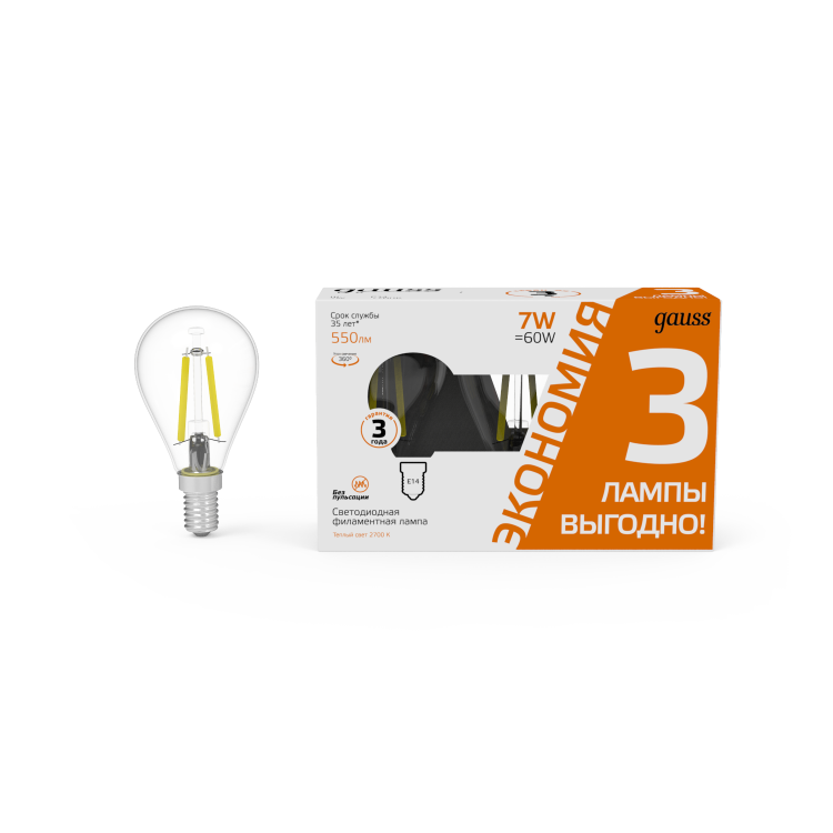 Светодиодные филаментные лампы GAUSS - это новейшие технологии в светотехнике. Лампы имеют привычный вид классических ламп накаливания, освещают пространство на 360о и дают больше света по сравнению с обычными светодиодными лампами за счет прозрачной колбы. Идеально подходят для хрустальных люстр и открытых светильников, а также для реализации дизайнерских решений, где важен вид классических ламп накаливания.