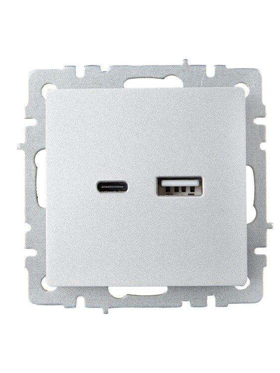 BRITE Роз. USB A+C 18Вт РЮ11-1-БрА алюм. IEK (кр.1шт)