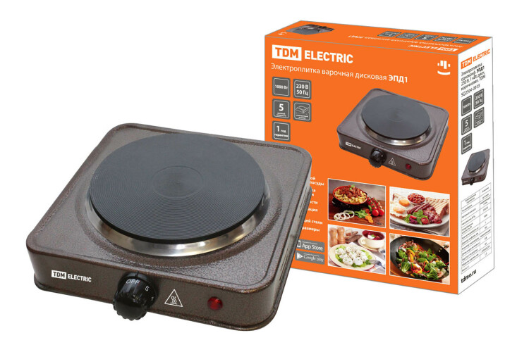Электроплитка одноконф. ЭПД1 230 В, 1 кВт, диск, коричневая, TDM (кр.1шт)