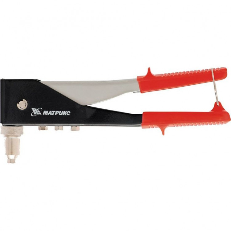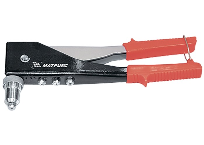 Рабочие части инструмента изготовлены из конструкционной стали. Имеет функцию перестановки головки для работы под углом 90 градусов. Предназначен для установки алюминиевых заклепок в труднодоступных местах при скреплении заготовок и деталей.