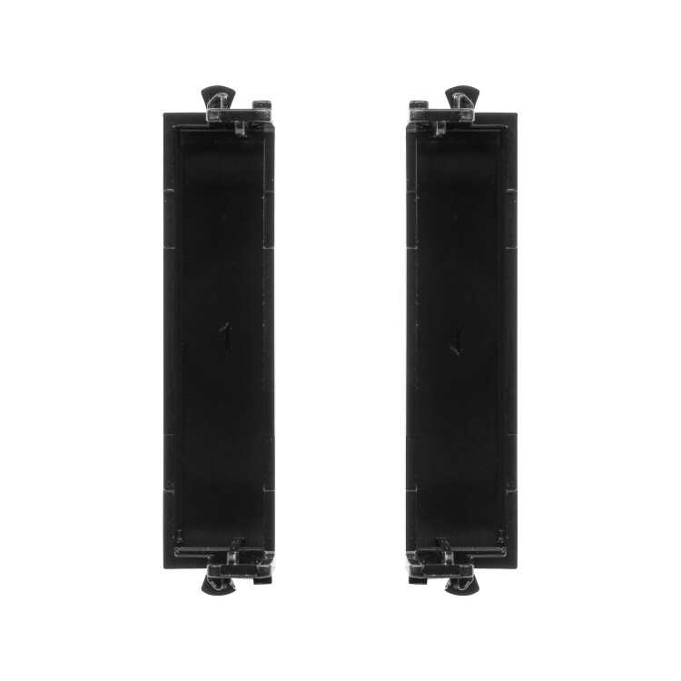 Компле кт модульных заглушек. Назначение: для монтажа в систему кабельных коробов «In-liner Front» и систему организации рабочих мест «Сотто» (Sotto) при помощи рамок-суппортов и каркасов «Avanti» (код 4400912 и т. д.); для вывода и фиксации кабеля. Кол-во модулей: 0,5. Кол-во в упаковке: 2. Цвет: «Чёрный квадрат»