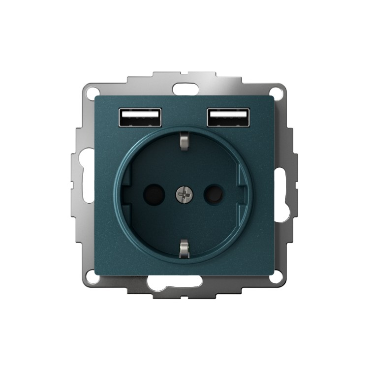 Розетка силовая Systeme Electric (ранее Schneider Electric) серии AtlasDesign 16А в цвете изумруд с заземлением и шторками с розеткой USB, с двумя разъемами типа А. Лицевые детали из качественного ABS-пластика, устойчивого к царапинам и УФ-излучению. Заземляющий контакт обеспечивает дополнительную защиту от удара электрическим током. Шторки обеспечивают дополнительную безопасность в доме, где находятся дети. Одно устройство позволяет как подключить бытовые приборы, так и зарядить мобильные устройства.