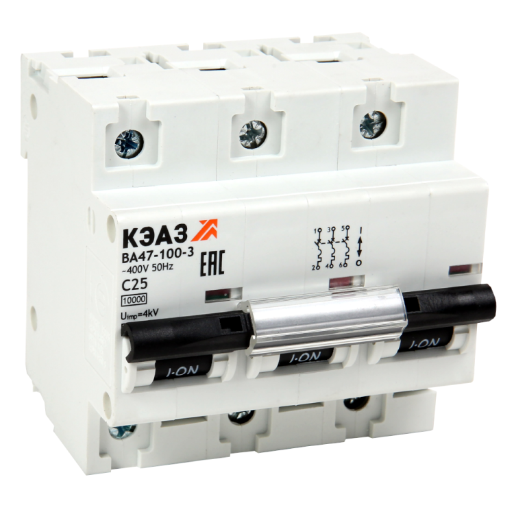 Выключатель автоматический модульный ВА47-100-3D125-УХЛ3 (10кА)-КЭАЗ (кр. 4шт)
