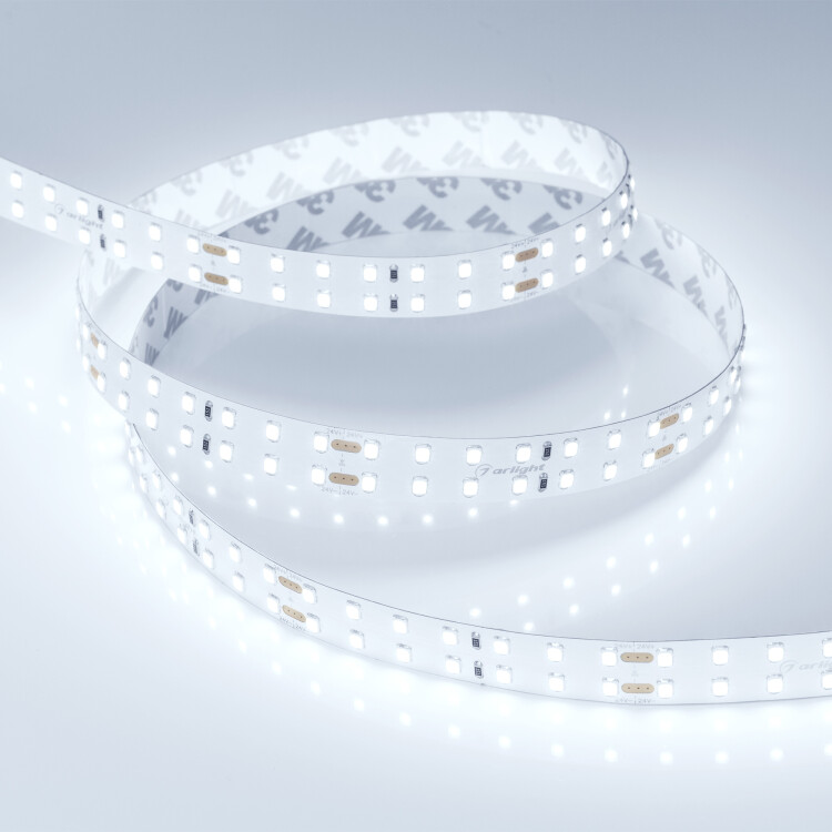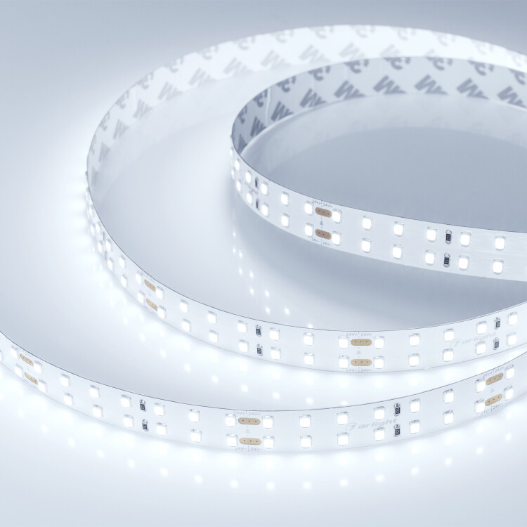 Гибкая лента LUX, светодиоды smd 2835, 196 шт/м (980шт на 5м), белая плата 15 мм, скотч 3М. Цвет ХОЛОДНЫЙ 7700-9600K. Питание 24V, мощность 20 Вт/м (100 Вт на 5м), угол 120, цветопередача CRI85. Размеры 5000х15x1.5мм. Мин.отрезок 71.43мм, 14 светодиодов. Цена за 1м. Кратность заказа поставщику: 5 м.