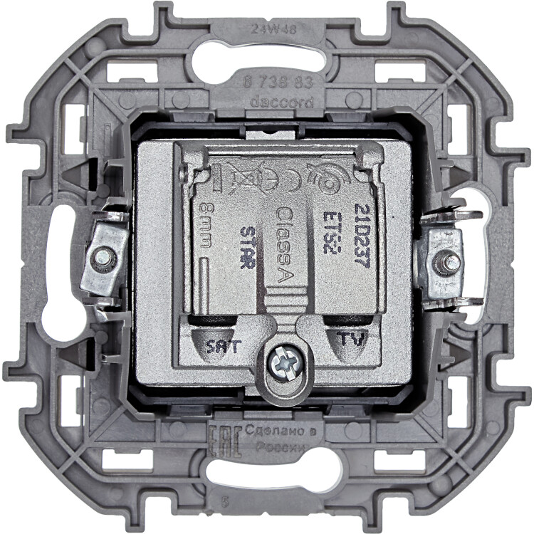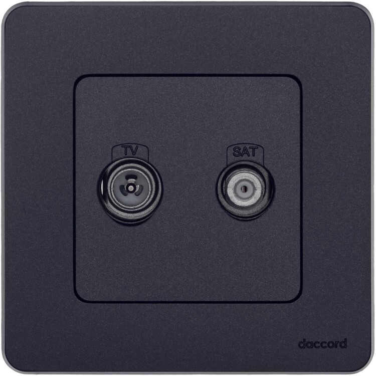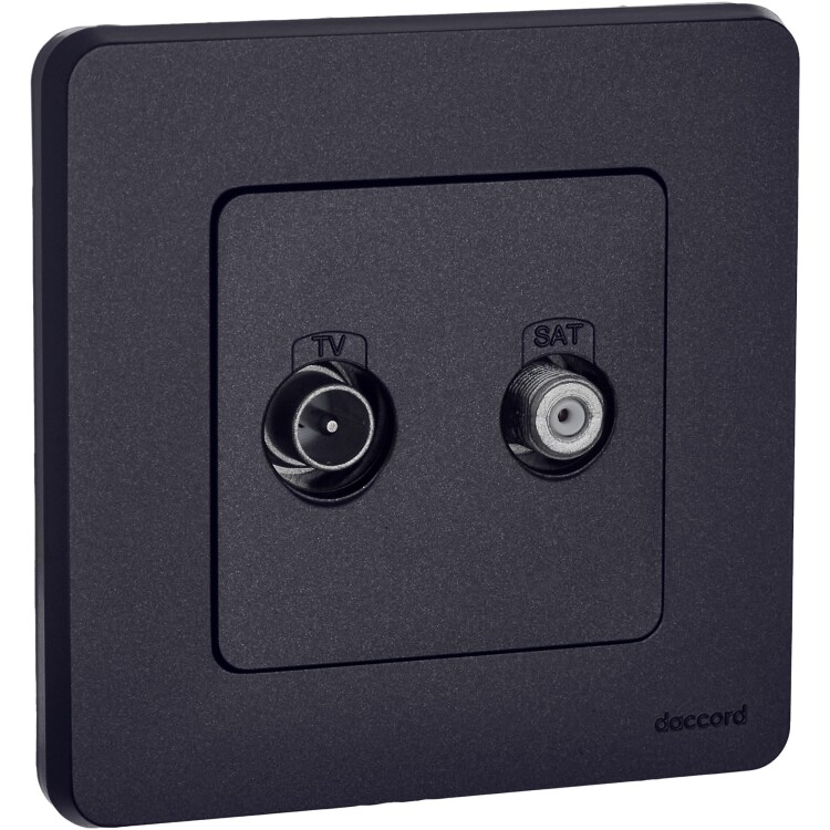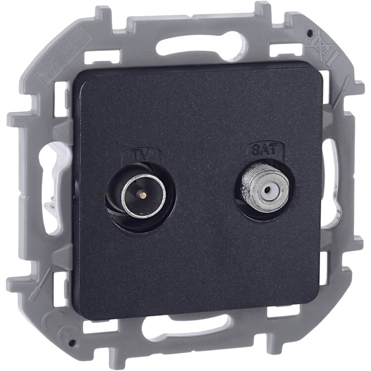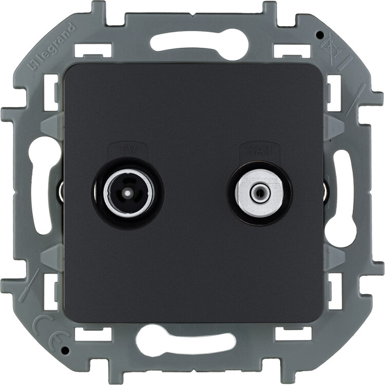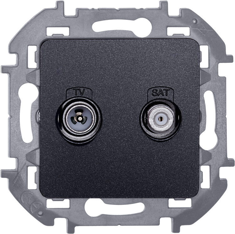 Розетка TV-SAT двухкабельная для скрытого монтажа Legrand/Daccord Inspiria, для схемы "звезда", затухание 1,5дБ, 4-2400МГц / 1,5дБ 4-2400МГц, поддержка обратного питания для активных антенн до 500мА, цвет "Антрацит".