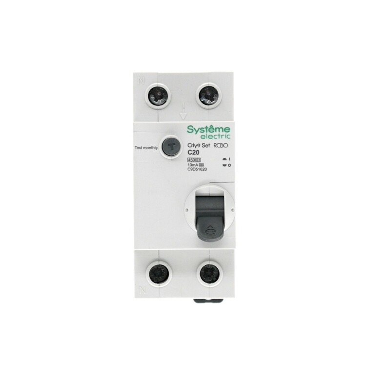 Автоматические выключатели дифференциального тока (АВДТ) серии City9 Set Systeme Electric,1P+N, номинальный ток 20 А, характерис тика С, Icn = 4.5 кА, ток утечки 10 мА, тип А. АВДТ применяется в электрических сетях напряжением 230В. Предназначен для защиты сети от перегрузок, людей от поражения электрическим током и токов короткого замыкания. Уставка по току утечки 10 мА обеспечивает гарантированную защиту людей при прямом прикосновении. Кнопка тест обеспечивает проверку работоспособности аппарата. Крепление на DIN-рейку шириной 35 мм. Безопасные клеммы.