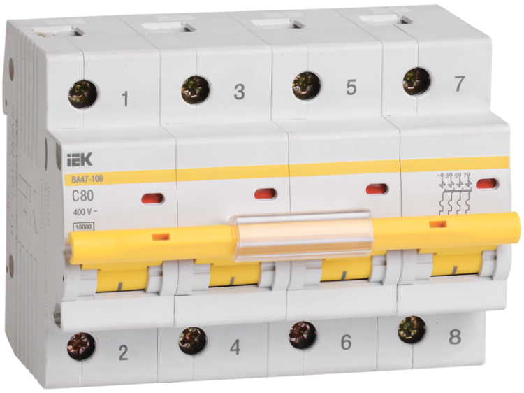 Автоматические выключатели ВА47-100 предназначены для защиты распределительных и групповых цепей, имеющих активную и индуктивную нагрузки.