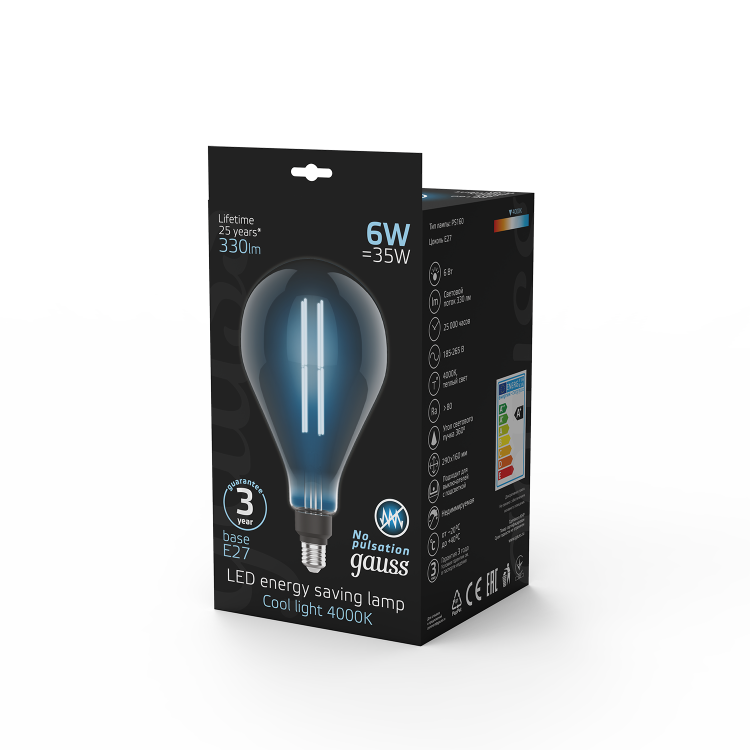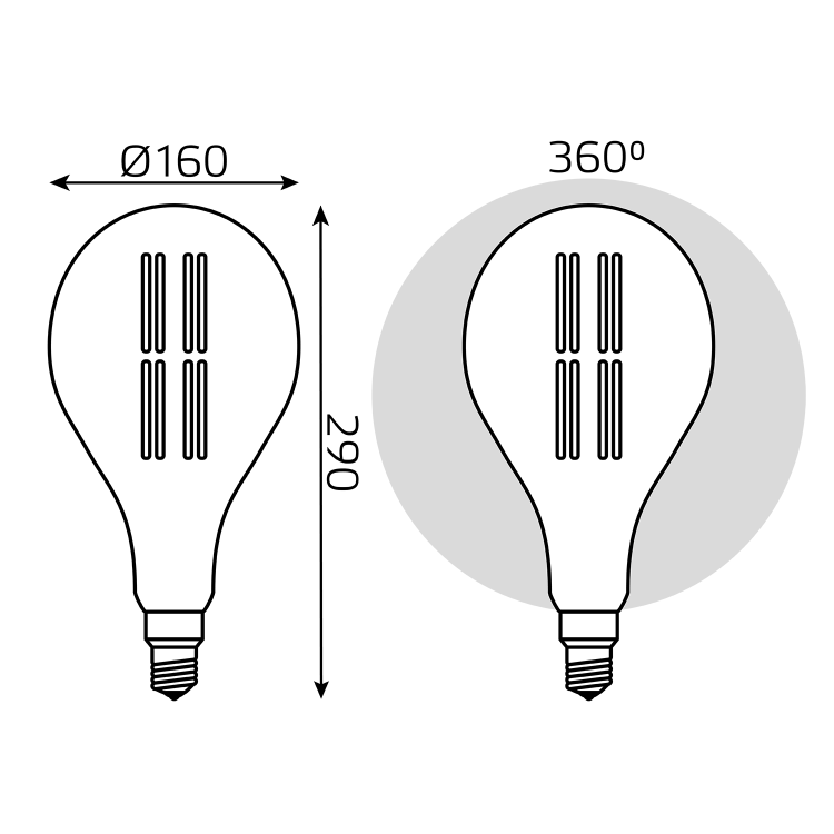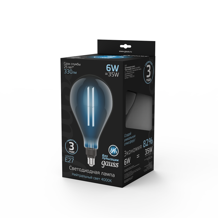 Лампа Gauss LED Vintage Filament Straight PS160 6W E27 290*160mm Gray 330lm 4000K 1/6