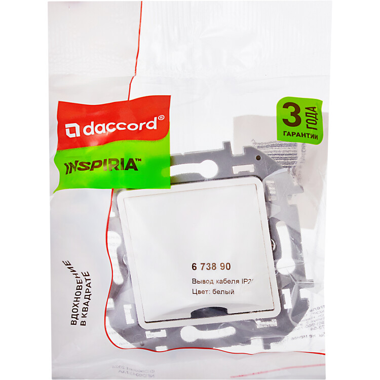 Вывод кабеля IP21 для скрытого монтажа Legrand/Daccord Inspiria, с зажимом для кабеля, цвет "Белый".
