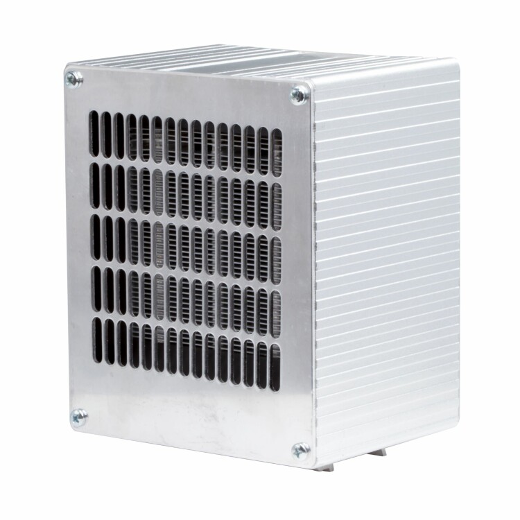 Обогреватель в алюминиевом корпусе с вентилятором мощностью 750 Вт предназначен для поддержания необходимой температуры внутри электротехнического шкафа. Работает от напряжения 230 В с частотой 50/60 Гц. Обогреватель изготовлен из высококачественных материалов, обеспечивающих надежную работу. Степень защиты IP20. Благодаря своим компактным размерам 90 x 108 x 124 мм, этот обогреватель легко устанавливается в ограниченном пространстве. Рабочий диапазон температур от –45 до +70 ˚C делает его подходящим для использования в суровых условиях эксплуатации. Обогреватель оснащен нагревательным элементом РТС-типа, что обеспечивает стабильную и долговечную работу.