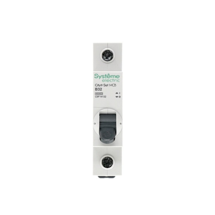 Автоматический выключатель серии City9 Set Systeme Electric, 1-полюсный, номинальный ток 32 А, характеристика B, Icn = 4.5 кА. Применяется в электрических сетях напряжением 230 В. Предназначен для защиты от перегрузок и токов короткого замыкания. Оснащен механизмом «мгновенной коммутации». Ударопрочный корпус из специального пластика с 6 металлическими заклепками. Безопасные клеммы исключают попадание кабелей в заклеммное пространство (ранее Schneider Electric Easy9 EZ9F14132).