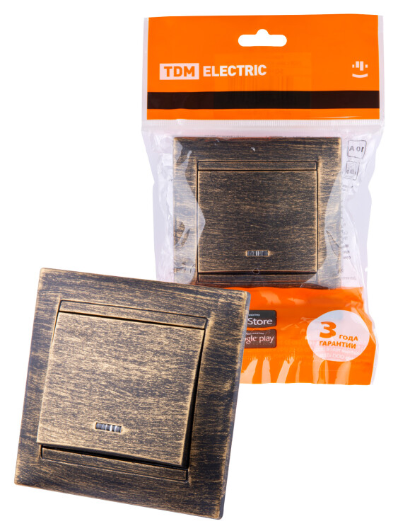 Выключатель 1 кл. с подсветкой 10А старинная бронза "Лама" TDM (кр.10шт)