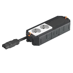 Готовый к подключению универсальный кронштейн UTC4 оснащен 2 розетками 33 с защитным контактом белого цвета и 2 заглушками для последующей установки 2 электроустановочных устройств Modul45. Подходит для подключения соединительных проводов VL и монтажных элементов номинальных размеров R7, R9 и 9.Соединительный провод, ПВХ, со штекером, 3-полюсный, тип WINSTA MIDI.