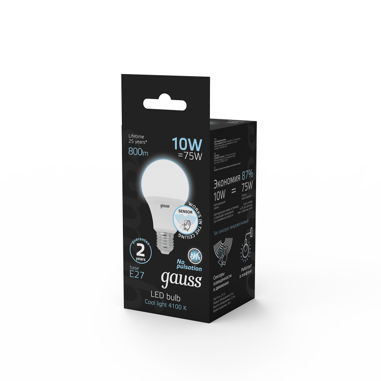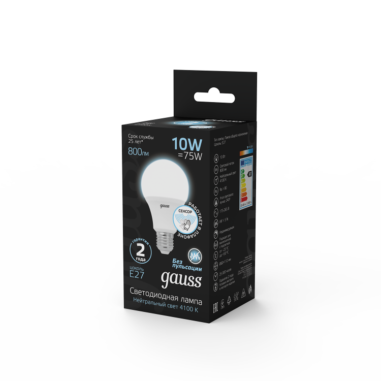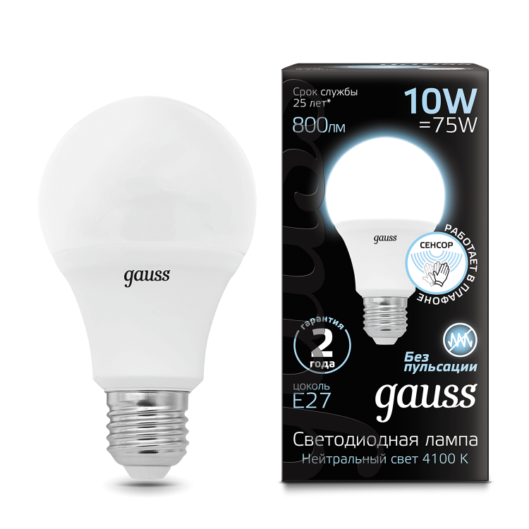 Лампа Gauss A60 с нейтральной цветовой температурой 4100К и минимизированной пульсацией, поможет создать комфортное, а главное безопасное освещение для чтения, работы или отдыха.