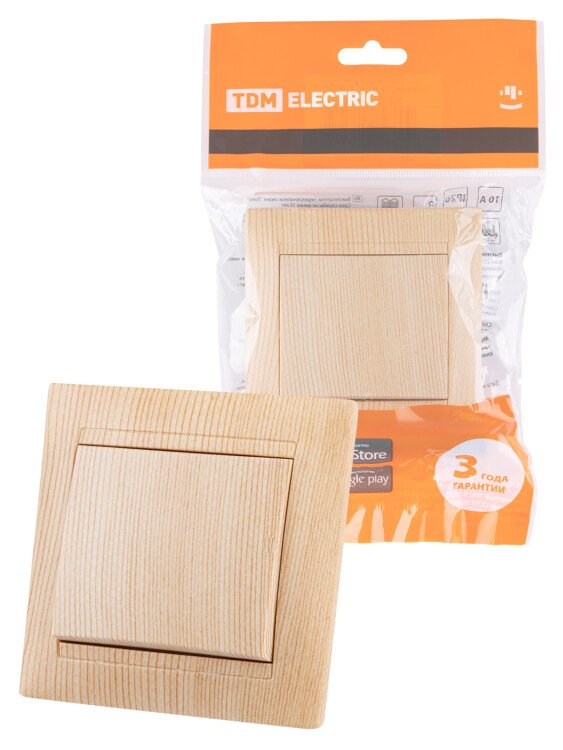 Выключатель 1 кл. 10А сосна "Лама" TDM (кр.10шт)
