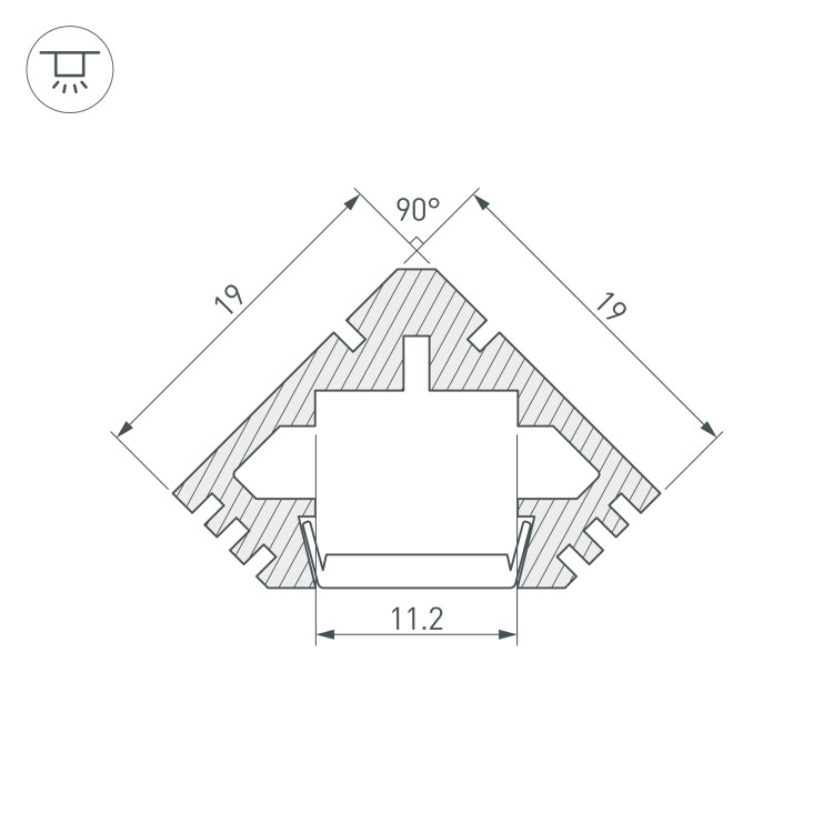 Алюминиевый угловой профиль для светодиодных лент и линеек. Цвет - белый RAL9010 лаковый (порошковая окраска). Габаритные размеры (L×W×H): 2000x19x19 мм. Ширина площадки для ленты 11,2 мм. Экраны, заглушки и другие аксессуары приобретаются отдельно. Цена за 1 метр. Кратность заказа поставщику: 2 м.
