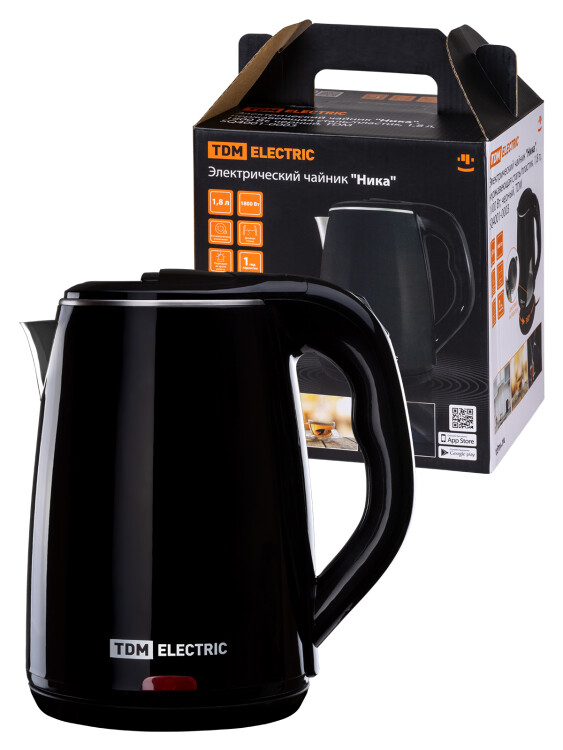 Электрический чайник "Ника", нержавеющая сталь / пластик, 1,8 л, 1800 Вт, черный, TDM (кр.1шт)
