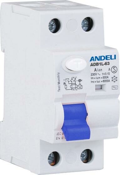 УЗО ADB1L-63 2P 63A 30mA тип AC 6kA (ANDELI) (6 шт)