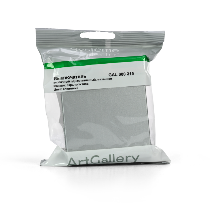 Механизм Systeme Electric серии ArtGallery в цвете алюминий выключателя 1-клавишного с самовозвратом подходит для сетей 250 В, на ток 10 А.
