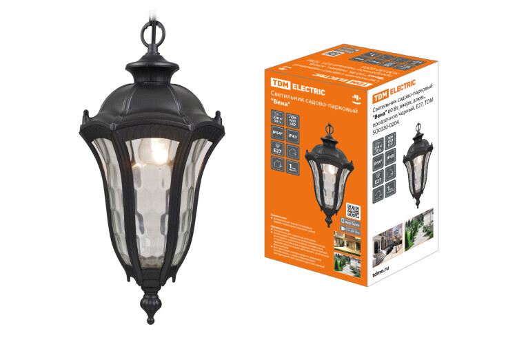 Светильник садово-парковый "Вена" 60 Вт, подвес, алюм., прозрачное/черный Е27, TDM (кр.1шт)