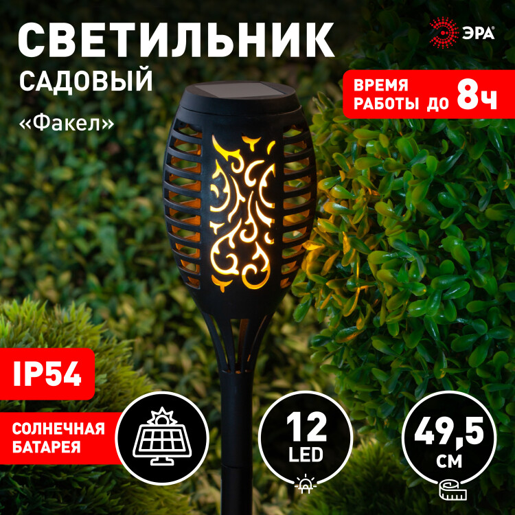 ERASF020-33 ЭРА Садовый светильник Факел на солнечной батарее, 49,5 см (20/360) (кр. 20шт)