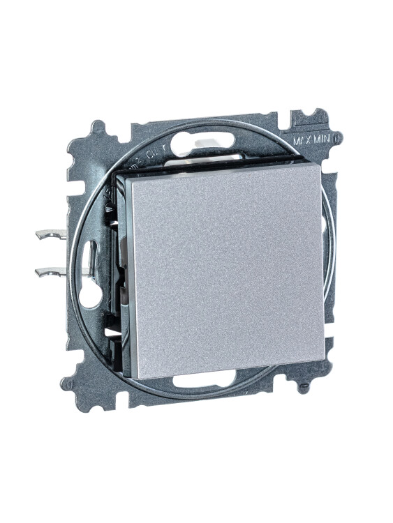 Переключатель перекрёстный 1-клавишный, Levit, серебро/дымчатый чёрный (кр.15шт)