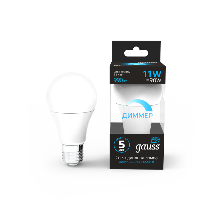Лампа Gauss A60 способна создать яркое и равномерное освещение в любом помещении. Благодаря цоколю Е27, она подходит для большинства обычных светильников, что делает ее удобным решением для вашего дома или офиса.