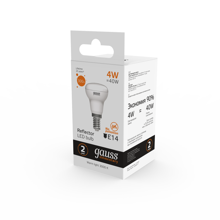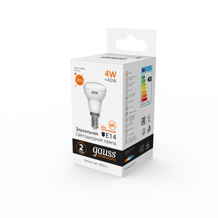 Отличная замена ламп накаливания и компактных люминесцентных ламп форм R39, R50, R63. Благодаря направленному световому пучку эти лампы помогают создать красивое, акцентное освещение. Спектр применения зеркальных ламп Gauss Elementary весьма широк: они прекрасно подойдут для любых типов потолков, для светильников направленного света и точечной подсветки.