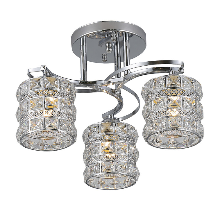 Люстра на потолок Rivoli Carolina (арт. 9079-303) под 3 лампы Е27 40 Вт отличается оригинальными очень красивыми плафонами, сочетающими в себе декоративно обработанный металл и хрустальные детали с высокоточной огранкой. Хрусталь данной люстры прозрачный и чистый, кристаллы стильной квадратной формы. Металлический корпус эффектного серебристого цвета гальванизирован, а значит защищен от выцветания и внешних механических повреждений, таких как царапины и сколы. Такая люстра в гостиную переживет с вами не один переезд и сможет создать уютный яркий интерьер в любом месте.