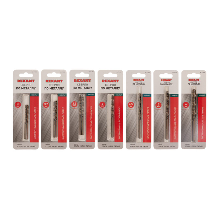 Набор REXANT состоит 7 сверл по металлу диаметром 3/3,2/3,5/4/4,5/5/6 мм.Предназначен для сверления такиx материалов, как коррозийные (нержавеющие) и жаростойкие стали, легированная и нелегированная сталь, серый чугун, стальное литье, кислотостойкие стали, титан и титановые сплавы.Спиральные сверла из легированной быстрорежущей стали (Р6М5К5) с 5% содержанием кобальта.Оснастка оснащена цилиндрическим xвостовиком. Отличительной особенностью инструментов является заточка под углом 135 градусов, что обеспечивает высокое качество обработки и максимальную производительность.