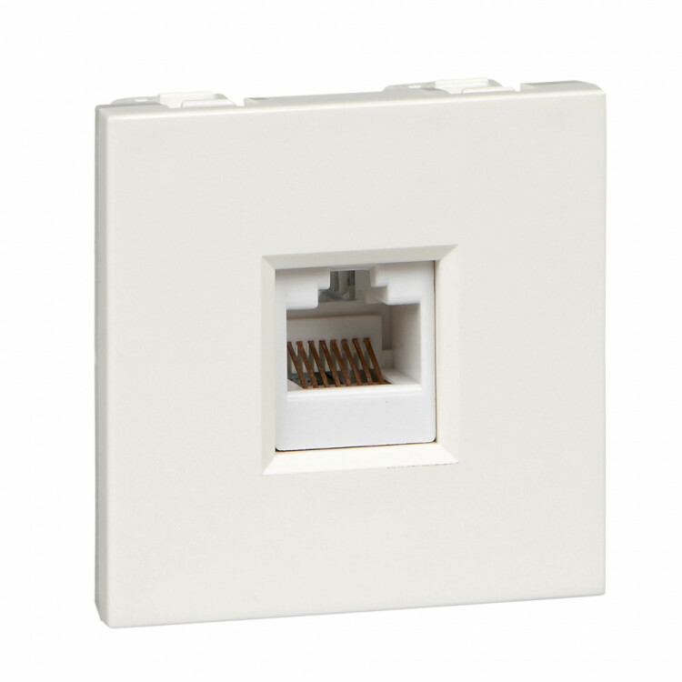 Розетка компьютерная с разъёмом RJ45 категория 5е W45 Systeme Electric (ранее Schneider Electric) скрытой установки. Размер - 45х45 мм, размер в модулях - 2 модуля. Применяется в электромонтажных системах (кабель-каналы, лючки, колонны и мини-колонны), использующих модульные ЭУИ стандарта 45х45 мм. Совместима с розеточными лючками MultiDesk. Цвет: белый RAL9010.